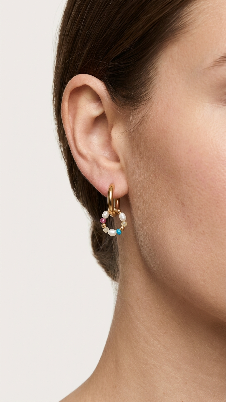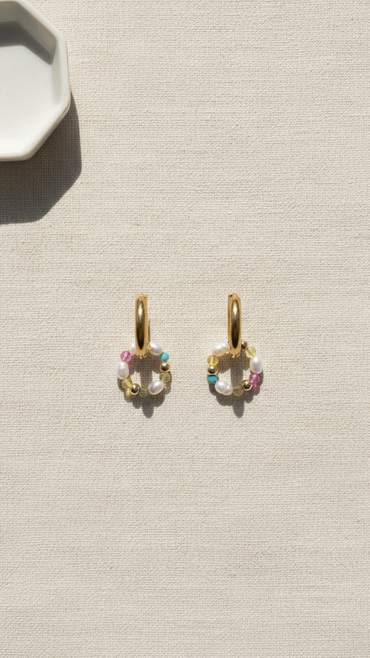 Die Kombination aus vergoldetem Edelstahl, schimmernden Perlen und farbigen Edelsteinen macht die Creolen zu einem besonderen Hingucker – perfekt für Alltag, Urlaub oder besondere Anlässe. Dank des robusten Materials sind sie wasserfest und langlebig.